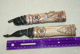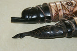 CHOICE BETWEEN 2 Vintage Timor Ethnic Authentic Tribal Lime Containers (used during Betel Habit): Hand Carved Buffalo Bone receptacles with hand etched Scrimshaw motifs, Hand Carved Ebony Wood Lids, Fish & Turtle motifs: BN18A & BN18B