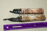 Each flute container has a traditional, one-of-a-kind (bufalus bufalis or Indonesian water buffalo) hand etched bone body, with a hand carved ebony wood stopper on top.