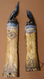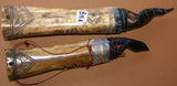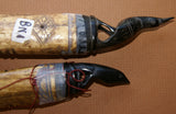 Each flute container has a traditional, one-of-a-kind (bufalus bufalis or Indonesian water buffalo) hand etched bone body, with a hand carved ebony wood stopper on top.