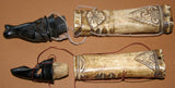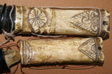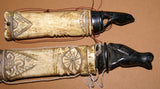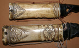 Vintage Water Buffalo Bone Scrimshaw Betel-Lime Containers: Traditional, each one-of-a-kind, hand-etched  bufalus bufalis or Indonesian water buffalo bone body with wood stoppers.