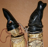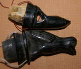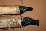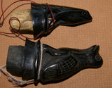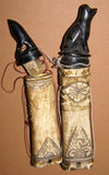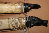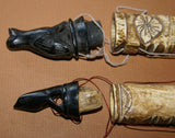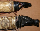 Timor Ethnic Authentic Tribal Lime Container ( used during Betel Habit), Vintage Hand Carved Buffalo Bone receptacles: Choice between 2 pieces with Scrimshaw motifs, 1 with hand Carved Wood Frog stopper and the other with Bird Lid. BN28A & B