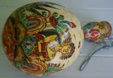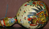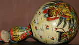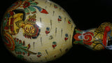 Unique Large Balinese Lime Gourd Hand painted with Wayang Kulit traditional & detailed motifs, Beautiful Kamasan Art depicting Ramayana Epic Scenes: 1G10, 11” tall. Betel habit paraphernalia. Collected in late 1900’s