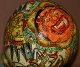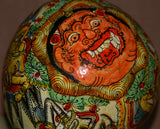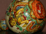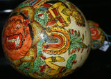 Balinese Lime Gourd, One of a kind, hand-painted with details in the tradition of Wayang Kulit Art, Typical Kamasan style, depicting a scene from the Ramayana Epics.