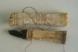 Timor Ethnic Authentic Tribal Lime Container ( used during Betel Habit), Vintage Hand Carved Buffalo Bone receptacles: Choice between 2 pieces with Scrimshaw motifs, 1 with hand Carved Wood Frog stopper and the other with Bone Frog Lid BN2A or BN2B