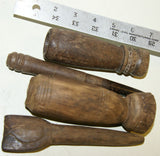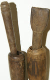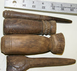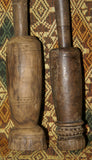 2 RARE MELANESIA MASSIM TROBRIAND ISLAND BETEL LIME POUNDER & PESTLE SETS, (ITEM BP7: EARLY 1900’S GOOD PATINA) (ITEM BP8: 1970’S VARIGATED WOOD)