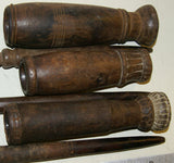 Papua New Guinea, Trobriand Islands, early 20th century: These hand-carved wooden betel receptacles with pounder or pestle included, were each nicely carved with some incised details.