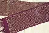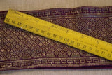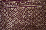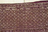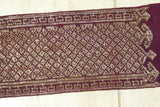 Old Ceremonial Balinese hand woven textile Antique Burgundy Setagen Brocade damask Ceremonial Songket Runner Belt Embroidery with Metallic Gold Threads 48" x 4" (SG33) Collected in Klunkung Regency, Bali & belonging to Nobility royalty