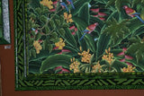 GIGANTIC 43”x 31” ORIGINAL DETAILED COLORFUL BALINESE PAINTING ON CANVAS SIGNED BY RENOWN UBUD ARTIST RAINFOREST PARADISE WITH FOLIAGE FLOWERS HIBISCUS PARROTS BIRDS FRAMED IN SIGNED CUSTOM FRAME HANDPAINTED TO MATCH ARTWORK DFBB19 DESIGNER ART