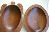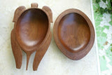 Unique, Hand Carved with mastery out of solid, hard, thick and heavy wood. One of a kind art creations from excellent sculptor: The platter of marine turtle has inlaid eyes made of real shell stopper.