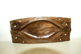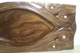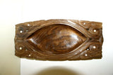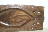RARE MASSIM, LARGE HAND CARVED DISH/BOWL WITH MOTHER OF PEARL CIRCLE INSERTS AND TYPICAL TROBRIAND ISLAND INCISED DESIGNS OF ROLLING WAVES