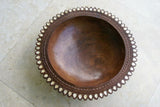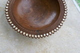 Unique, Trobriand Melanesia Massim Kula,Heavily Hand Carved Kwila Wood Bowl, with Delicate, Detailed, Carving Around the Rim and Tear Drop Mother of Pearl Inlays