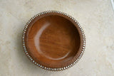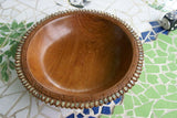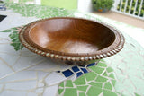 Unique, heavily hand-carved bowl with delicate detailed hand-carving around the rim with mother of pearl inlays.