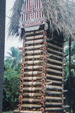 A long time ago when the days were longer and the nights shorter lived a hero called Tava who at times took the form of a snake. Tava was known to pass between the villages that are identified as the active trade route. When he was present in a village the people were said to have good fortune and prosper. His location was known only to one woman in each village and she would feed and tend to him. If he felt mistreated or betrayed at any time he would move on to the next island. On his departing the good fortune would also depart with him. He would nevertheless leave each village with a trade.