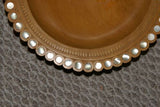 STUNNING 1 OF A KIND HAND CARVED KWILA WOOD MUSEUM MASTERPIECE LIME PLATTER DISH BOWL WITH MOTHER OF PEARL INSERTS & DELICATE LACY INCISED BORDER BY RENOWNED TRIBAL SCULPTOR 10.5X10.5X 3” TROBRIAND ISLANDS MELANESIA SOUTH PACIFIC DESIGNER COLLECTOR 2A48
