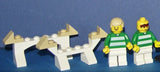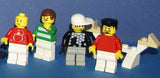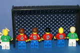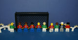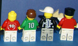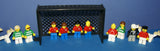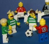 10 NOW RARE RETIRED LEGO SOCCER MINIFIGURES WITH 3 BENCHES, A NET, AND THE BALL. CHARACTERS ARE FROM 1979 UP TO THE 1980'S, HARD TO FIND CHARACTERS, AND INCLUDED WITH THEM IS THE SOCCER BALL, A GOAL NET AND 3 BENCHES.