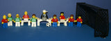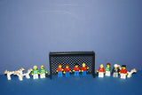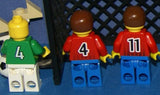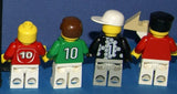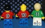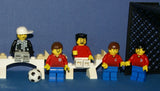 10 NOW VERY RARE RETIRED LEGO SOCCER PLAYER MINIFIGURES: SOC016, SOC002, SOC028, SOC087, SOC088, SOC089, SOC089, SOC090, SOC119, SOC118S, SOC098 & SOCCER BALL, GOAL NET, 3 BENCHES (KIT 59) YEARS 1979 TO 1980