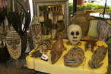 Masks, statues and carvings of Papua New Guinea’s cultures serve a variety of spiritual, cultural and decorative purposes. Most of the carvings found in PNG are from the Sepik region, where the production and use of masks, among other things, is an important part of traditional culture. Ancestral masks, for example, represent deceased clan ancestors, totemic creatures that assist the tribe by interceding on a high plane to provide food, prevent and cure illness, while spirit masks embody tribal spirits who inhabit the surrounding jungle, & may come to the help of the tribe to counterattack sorcery spells meant to arm them.