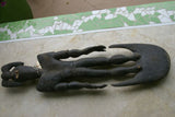 The story from where some of these characters are drawn often refers to secret tales only known by the tribal elders. The figure was hand carved out of one solid piece of wood. The eyes are shells incrusted into the hand carving.