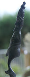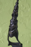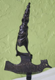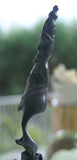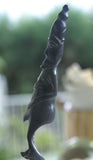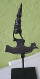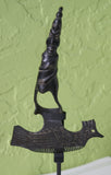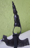 Genuine older hand carved Indonesian Water Buffalo Horn hair ornament with a female ancestor carving on the handle, to protect the owner from dark magic, and a rooster on the comb itself which represents new life every dawn. It comes with a custom stand. ITEM SP2.