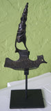 VINTAGE HAND CARVED ETHNIC TRIBAL BUFFALO HORN CEREMONIAL HAIR COMB ORNAMENT WITH DISPLAY STAND, VERY LARGE WITH CARVING OF FEMALE & ROOSTER, USED DURING FESTIVITIES, RITES OF PASSAGE AND SUCH, COLLECTED ON THE PREMISES, LATE 20TH CENTURY, INDONESIA