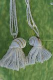 These Pacific shell tassels tie ends have many uses: for drapes, curtains, window treatment, fan pulls. The pair retails for $80.00, but we are liquidating what we have left at a fraction of retail!