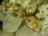 Chambered Nautilus, Pearlized Chambered Nautilus, Trochus Fenestratus, Pearlized Trochus Fenestratus, Pearlized Jade Turbo Seashell or Pearlized Silvermouth Turbo SeashelL, Tapestry Turban Seashell, Bat Volute S. Phillipines to N. Australia or conus legatus, Conus Canonicus or Conus marmoreus Marble Cone Indo-Pacific, Lettered Cone (Conus eburneus f. polyglotta) Indo-Pacific, Egg Cowry Indo-pacific, Snake-head Cowry Indo-pacific, Tiger Cowry Indo-pacific Coral reefs, Banded Tun Tonna Sulcosa Indo-Pacific offshore, Crowned Baler Indonesia, Endive Murex Philippines Pacific, Lambis lambis Indian Ocean Coral reef etc....