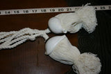 These Pacific shell tassels tie ends have many uses: for drapes, curtains, window treatment, fan pulls. The pair retails for $80.00, but we are liquidating what we have left at a fraction of retail!