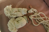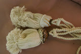 These Pacific shell tassels tie ends have many uses: for drapes, curtains, window treatment, fan pulls. The pair retails for $80.00, but we are liquidating what we have left at a fraction of retail!