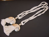 The shells themselves have been collected along isolated Pacific Islands. The total length of one is about 25" and the tassel itself is 7" long from top of shell to bottom of fringes. Our prices are started very low as we go straight to the source to find these treasures. We have many collector items available, rare pieces from around the world from antique to more recent, designer accents, precious textiles and textile hangers, gifts, rare antique prints, authentic signed paintings and sculptures available on a regular base in our booth, and we will keep on adding new and unique items as we go.