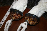 These Pacific shell tassels tie ends have many uses: for drapes, curtains, window treatment, fan pulls. The pair retails for $80.00, but we are liquidating what we have left at a fraction of retail!