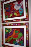 Molas have many layers of colored fabrics sewn with very tiny and close stitches that are practically invisible. The subjects chosen are inspired by their tropical islands’ surroundings and have a profusion of details. These molas are collector molas, each in perfect condition and of the highest quality of workmanship that can be found.