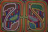 Collectible Handsewn Folk Art Mola Applique. Handstitched by an American Indian Kuna Seamstress. Geometric Motif of Seedlings Growing into Fragile Flowers. Traditional Background with Parallel Lines.