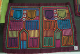 1980's Vintage one of a kind San Blas Traditional Colorful Blouse Mola Applique, textile Art By American Indian Kuna seamstress. Unique detailed geometric motif of pants/britches/trousers seen as perfect mirror images with a parallel background