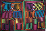 1980's Kuna Indian Mola from San Blas Island, Panama. Detailed Abstract Traditional Art Hand Stitched Applique: Colorful Trousers Pants Britches, 19.75” x 14.25”(79A)