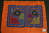 Kuna Indian Folk Art Mola Blouse Panel from San Blas Islands, Panama. HandStitched Applique: Geometric Abstract Double Meaning, Optical Illusion of 2 Dogs or 1 Pot with Animal Face Handles 16.5" x 13" (81B)