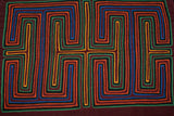 Kuna Indian Mola Blouse Panel from San Blas Islands, Panama. Geometric Abstract Folk Art, Handstitched Reverse Applique: Geometric Maze Mirror Images 16.75" x 11.75" (20B)