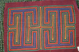 homeCollectible Folk Art Mola Applique, Textile. Handstitched by an American Indian Kuna Seamstress. Geometric Abstract Motif of Mirror Image Maze