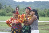 Additional pictures placed here also show a variety of photos from our trips such as my husband distributing goods to the Indian community, village scenes, a mola being started, a Kuna woman wearing one, and also how they can be used in your home to create a great cheerful and colorful one of a kind accent.