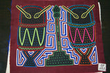 Collectible Handsewn Folk Art Mola. Reverse Applique, Handstitched by an American Indian Kuna Seamstress. Motifs Representing Drums and a Metronome.