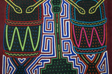 The most traditional, the oldest, the purest and truest of molas ever created were originally the geometrics ones, abstract masterpieces of handstitched vivid panels and a must for any serious collection. Harder and harder to locate today because the style is disappearing altogether, they are being replaced by less abstract motifs such as scenes of everyday life, animals, plants etc….