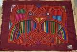 This particular type of geometric mola, with an image representing something that would not normally be abstract within an abstract background, that it blends in as a complete mosaic, is one of the oldest patterns that were once made in the 50's and evolved later, from this kind of design into full blown more exact representations of the subjects themselves, but often still with geometrics backgrounds.