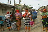 Additional pictures placed here also show a variety of photos from our trips such as my husband distributing goods to the Indian community, village scenes, a mola being started, a Kuna woman wearing one, and also how they can be used in your home to create a great cheerful and colorful one of a kind accent.