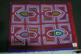 Kuna Indian Folk Art Mola Blouse Panel from San Blas Islands, Panama. Hand stitched Applique: Geometric Leaping Frogs 17.5" x 14" (41B)