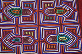 The most traditional, the oldest, the purest and truest of molas ever created were originally the geometrics ones, abstract masterpieces of handstitched vivid panels and a must for any serious collection. Harder and harder to locate today because the style is disappearing altogether, they are being replaced by less abstract motifs such as scenes of everyday life, animals, plants etc….