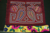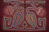 Collectible Handsewn Mola Applique. Handstitched by an American Indian Kuna Seamstress. Mirror Image Branch, Breadfruit and Leaves Motif. Tiny Triangles Pattern and Traditional Maze Background Inspired from the Brain Coral that Surrounds the Islands.