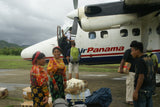 Additional pictures placed here also show a variety of photos from our trips such as my husband distributing goods to the Indian community, village scenes, a mola being started, a Kuna woman wearing one, and also how they can be used in your home to create a great cheerful and colorful one of a kind accent.