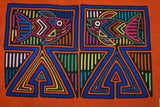 Kuna Indian Folk Art Mola Blouse Panel from San Blas Islands, Panama. Hand-stitched Applique Textile Art: Tropical Fish Cook-out 17" x 12" (56B)
