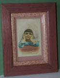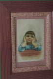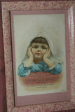 EPHEMERA AMERICANA WHIMSICAL ART: 1800's DOUBLE FRAMED (2 FRAMES IN 1) ANTIQUE VICTORIAN ADVERTISING TRADE CARD: HOODS PILLS CURE LIVER ILLS (DFPO2A) ADORABLE LITTLE GIRL DESIGNER COLLECTOR COLLECTIBLE WALL DÉCOR UNIQUE CHILD ROOM
