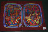 Kuna Indian Folk Art Mola Blouse Panel from San Blas Island, Panama. Museum Quality Hand stitched Reverse Applique: Colorful Abstract, Detailed, Stunning : Flowers in Baskets. Huge 17 1/4” X 13” (21B)