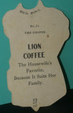 EPHEMERA AMERICANA WHIMSICAL ART: 1800's FRAMED VICTORIAN TRADE CARD: 5 DIE CUT PIECES FROM VARIED LION'S COFFEE ADVERTISEMENTS (DFPO2O) VINTAGE HAND PAINTED FRAME DESIGNER COLLECTOR COLLECTIBLE WALL DÉCOR UNIQUE